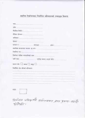 स्थानीय तह निर्वाचनबाट निर्वाचित महिलाहरुको तथ्याङ्क संलग्न ढांचामा भरि पठाईदिनु हुन ।