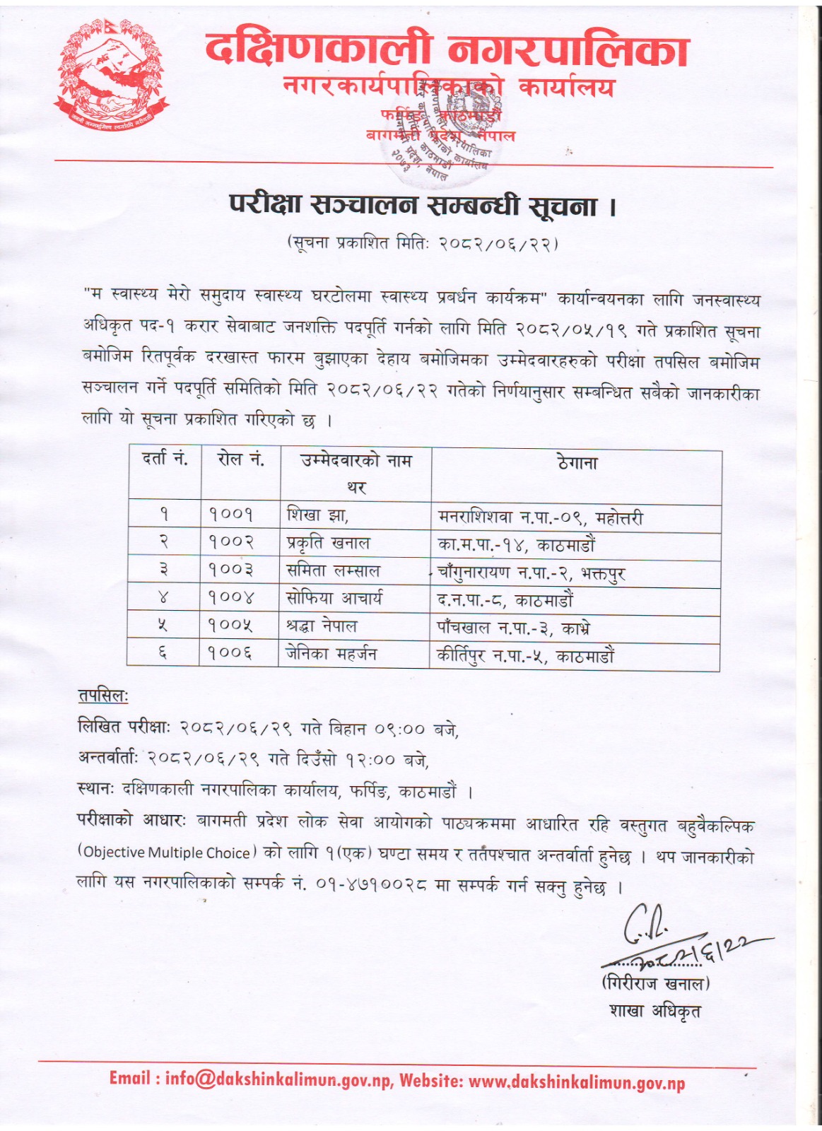 मेडिकल अधिकृत पदको लागि परिक्षा सञ्चालन सम्बन्धी सूचना