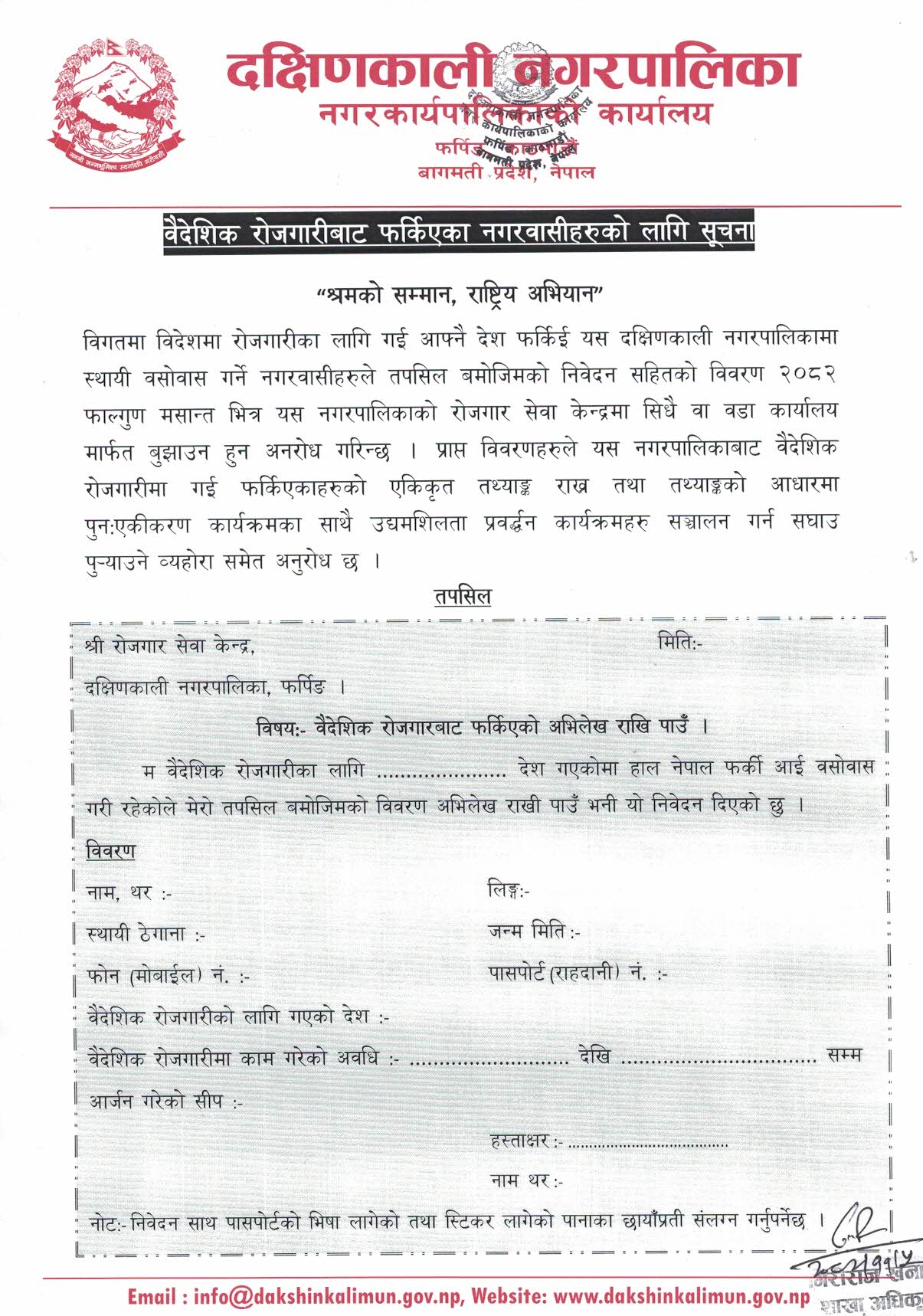 » वैदेशिक रोजगारीबाट फर्किएका नगरवासीहरुको लागि सूचना !